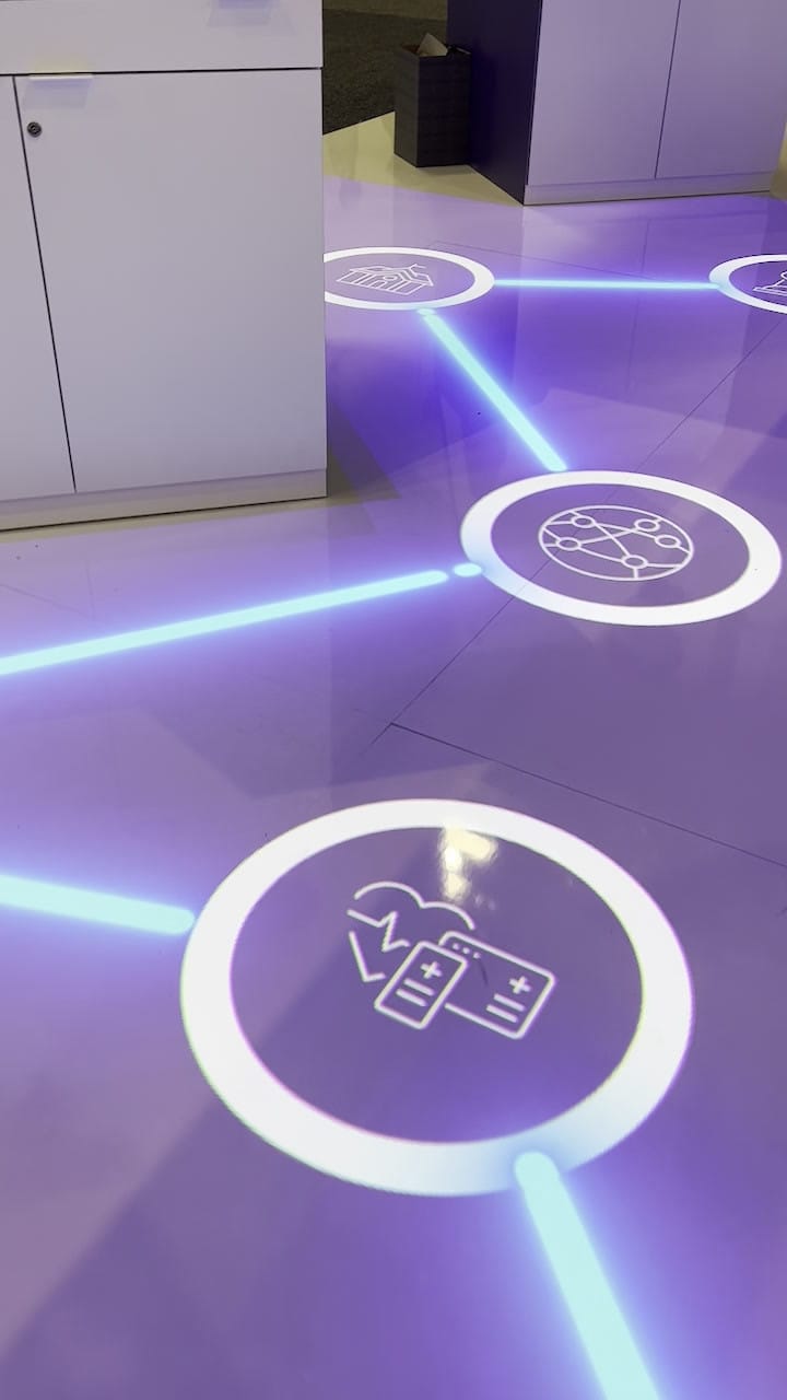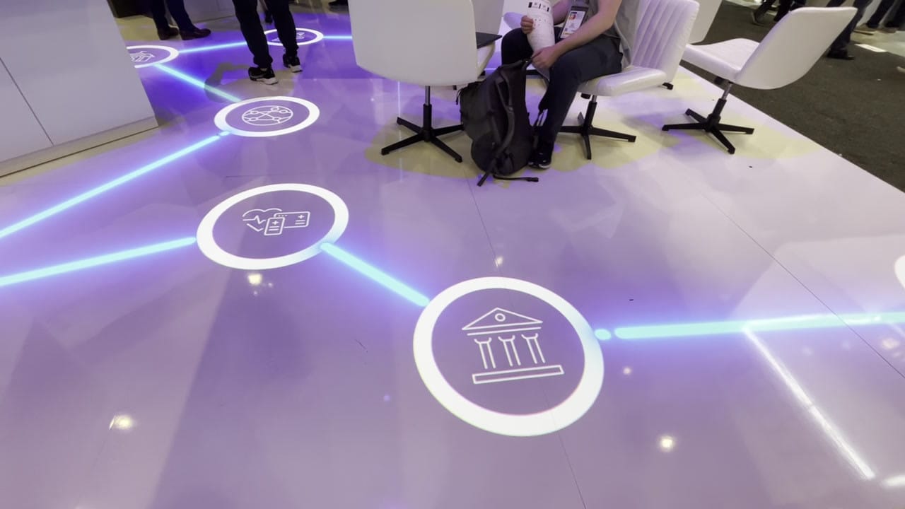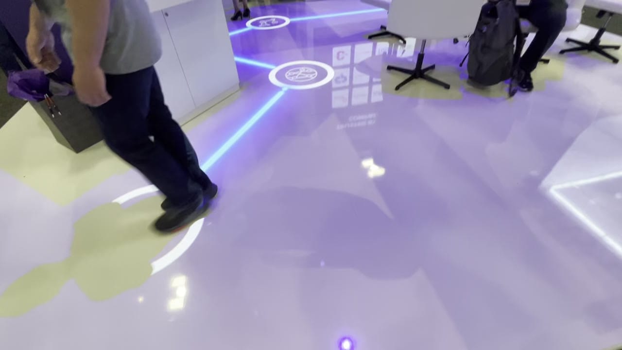 Projection mapping experience for Armis, a leading security platform. Our team led all aspects of projection mapping content creation, transforming the booth floor into a dynamic display highlighting Armis' divisions and services. A central LED wall served as both a canvas for high-impact video playback and a backdrop for live presentations.