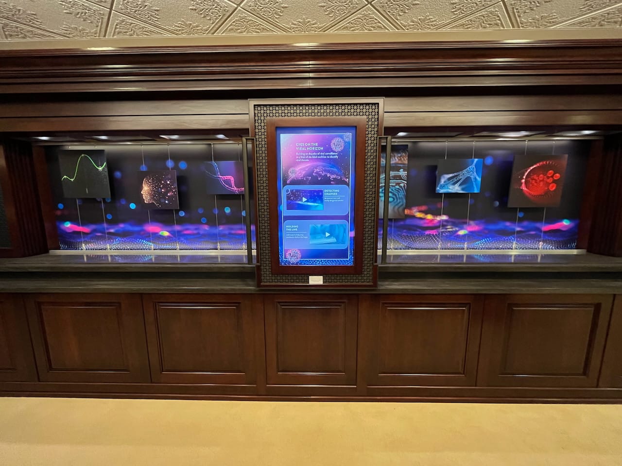 We designed and developed the "iWall," an interactive digital wall installed in an executive boardroom. This permanent installation serves as a dynamic visual timeline, highlighting ongoing research projects, major initiatives, and organizational milestones since 2008. Fully managed, regularly updated, and serves as a central hub for communicating company impact.