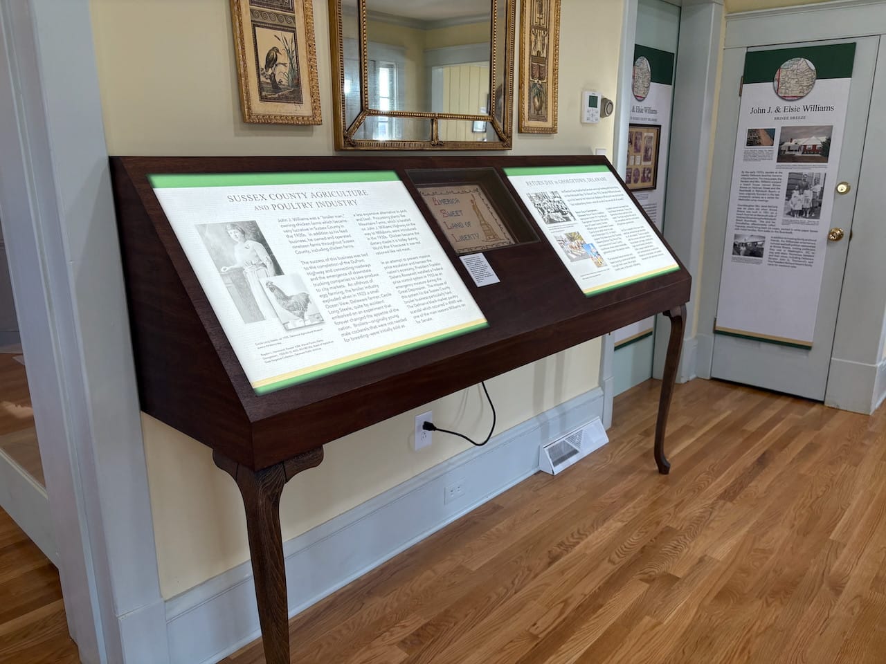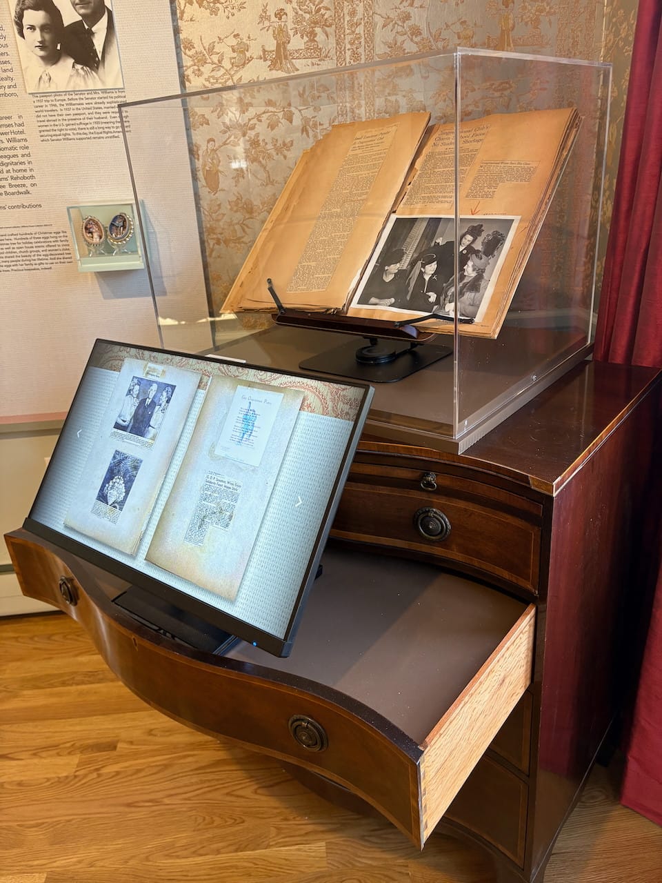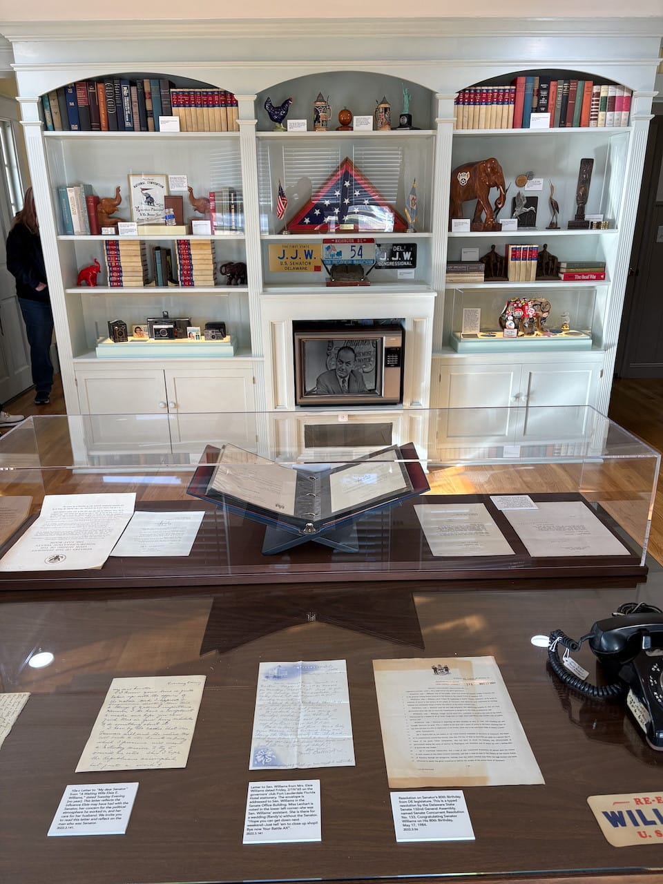 For this Delaware museum project, we wove technology, storytelling, and historic preservation into one seamless experience. Highlights include an AI-voiced Senator Williams narrating his own story via a vintage TV, interactive touchscreens, digital page-turning letters, proximity-triggered lighting, and an antique radio that comes alive as guests approach.