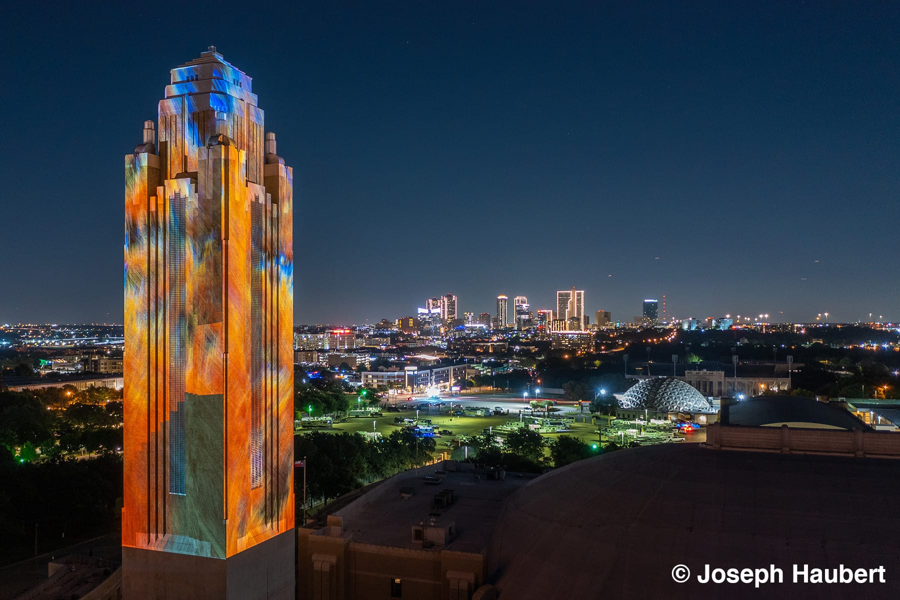 For the first time in 85 years, Fort Worth's iconic 204-foot Pioneer Tower became a living canvas—illuminated by a first-of-its-kind outdoor projection art event. We provided all architectural mapping and 3D scanning, engineered 12 high-powered projectors covering all four sides, and ran content playback featuring work from artists Refik Anadol, Quayola, and ten regional artists.